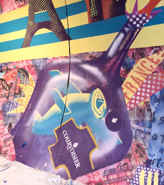 Bianca Romero announces her newest work "Around the world in 60 Days" a mixed media mural that visualizes a journey around the world celebrating the world's top liquor brands. Romero was commissioned to create a 1,000 square foot mural using her unique style of collage, wheat paste, acrylic and spray paint. The mural travels through featured bottles of Yamazaki Whisky, Hornitos Tequila, Courvoisier, Maker's Mark, Jim Beam, and Basil Hayden's.